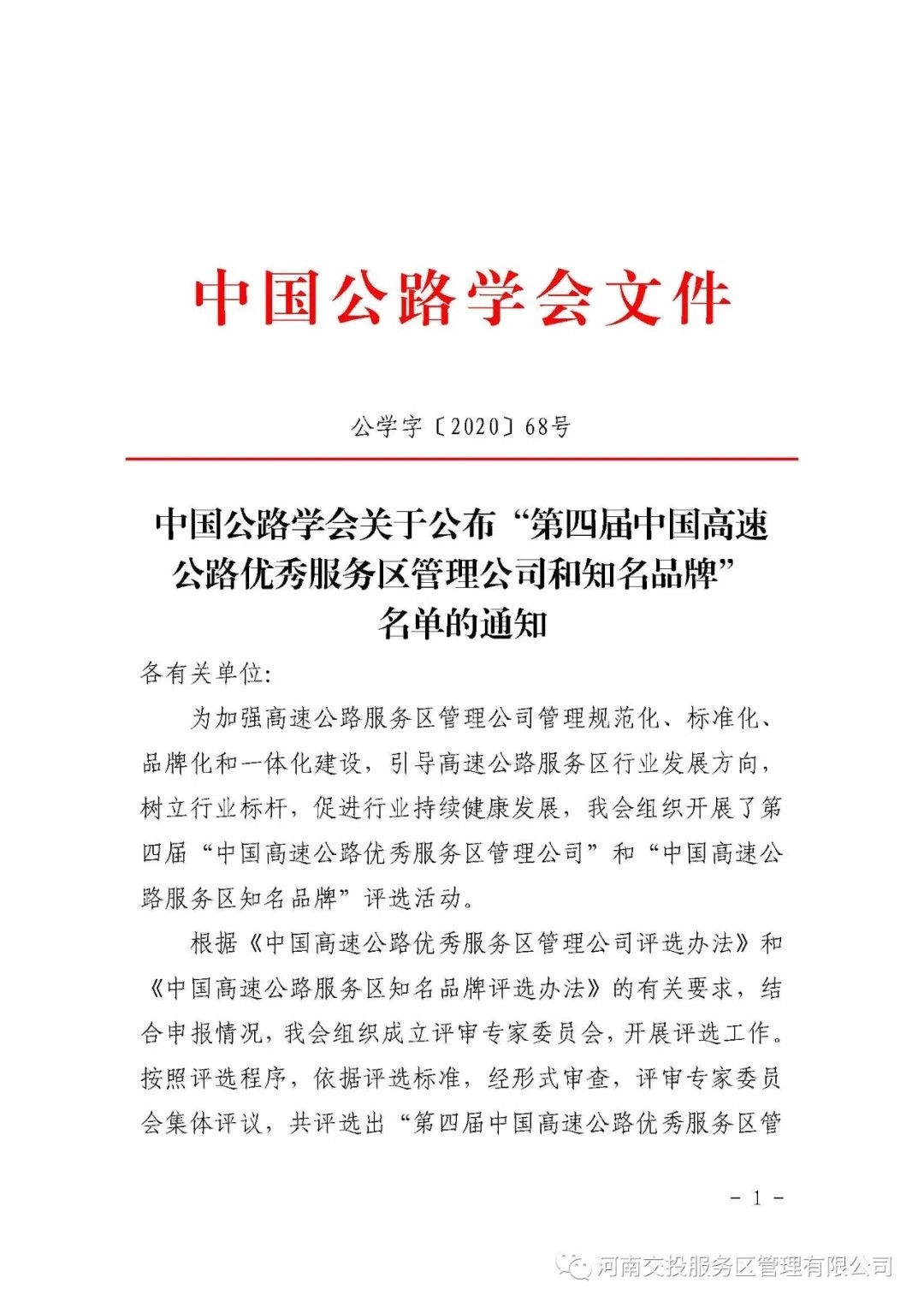 喜訊!公司獲評“第四屆中國高速公路優秀服務區管理公司”