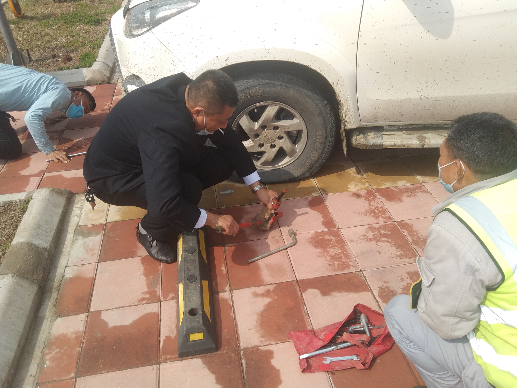 車輛爆胎急壞司機 明港服務區暖心伸援手